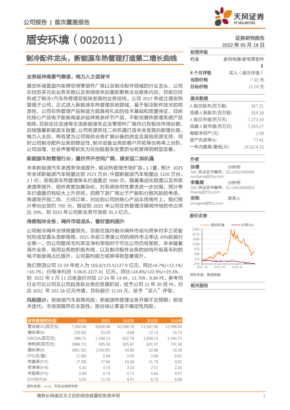 【天风证券】【20220518】盾安环境-002011.SZ-制冷配件龙头,新能源车热管理打造第二增长曲线-26页