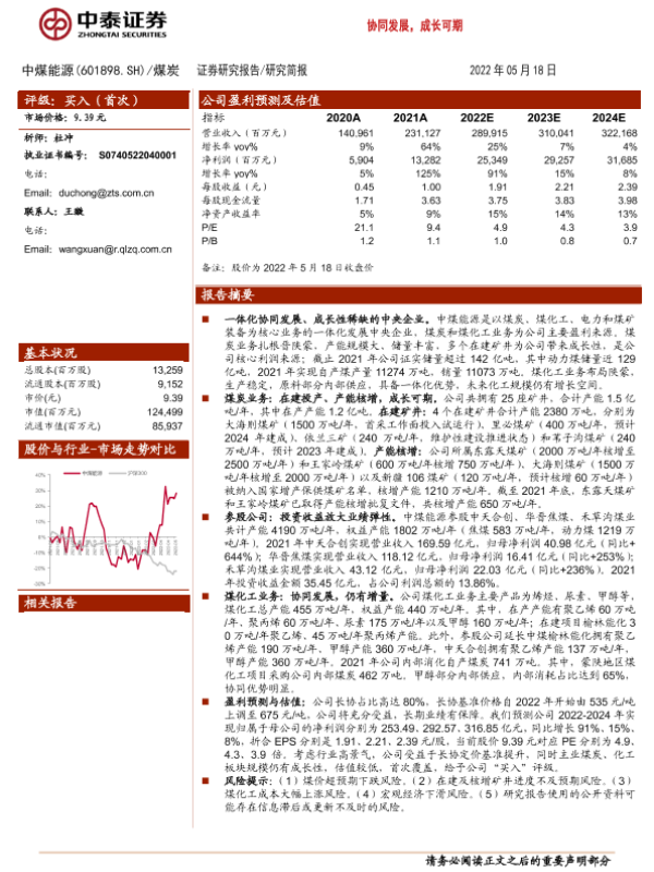 【中泰证券】【20220518】中煤能源-协同发展,成长可期-20页