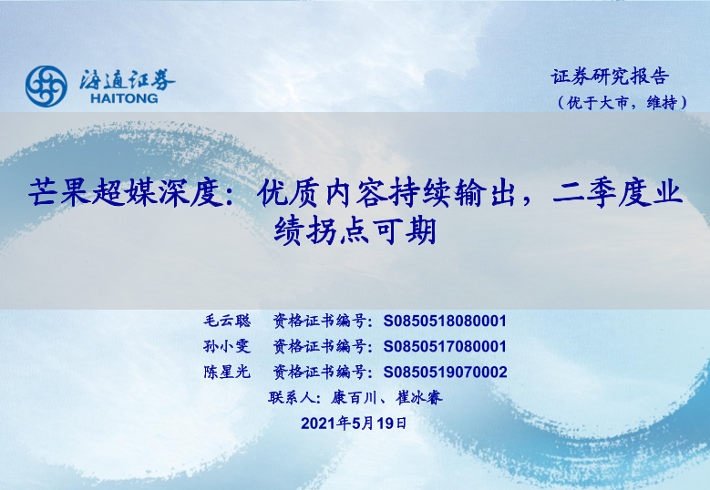 【海通证券】【20220519】芒果超媒深度:优质内容持续输出,二季度业绩拐点可期-34页