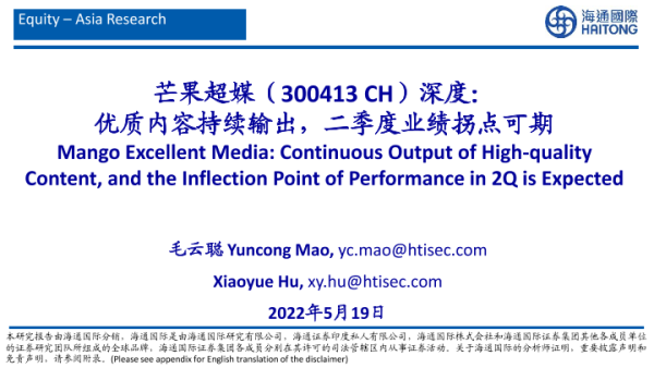 【海通国际】【20220519】芒果超媒-300413.SZ-深度:优质内容持续输出,二季度业绩拐点可期-52页