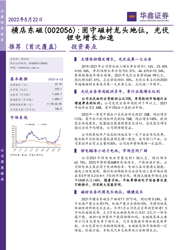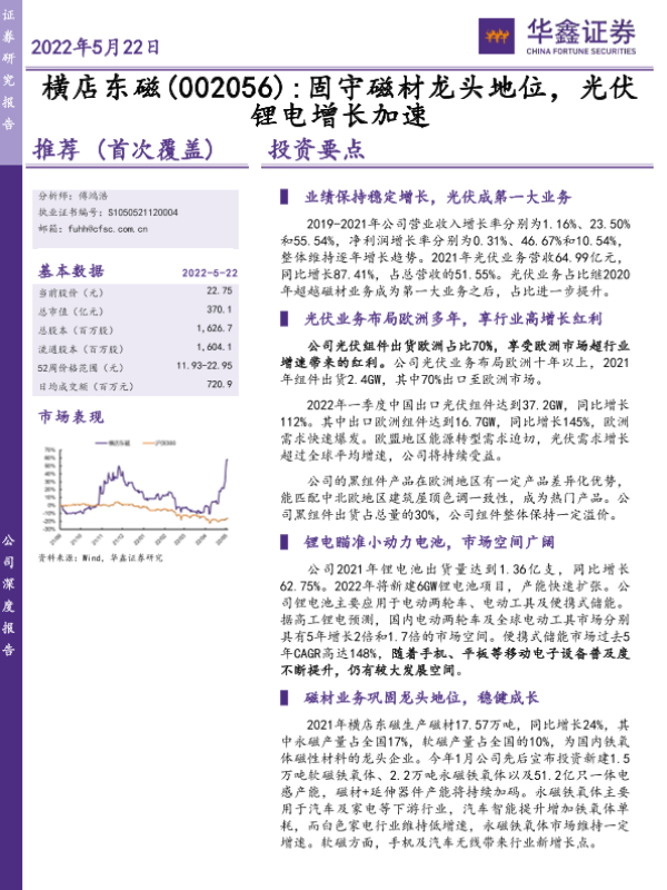 【华鑫证券】【20220522】横店东磁 固守磁材龙头地位,光伏锂电增长加速-28页