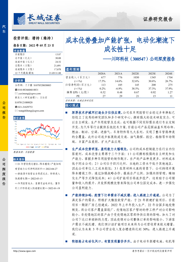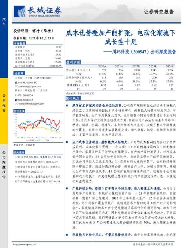 【长城证券】【20220523】20220523-长城证券-川环科技-300547.SZ-公司深度报告:成本优势叠加产能扩张,电动化潮流下成长性十足-23页