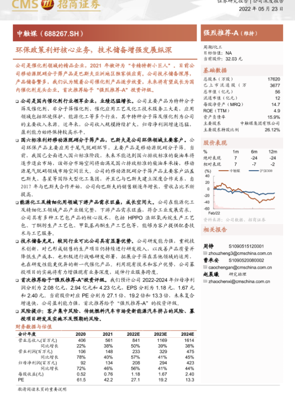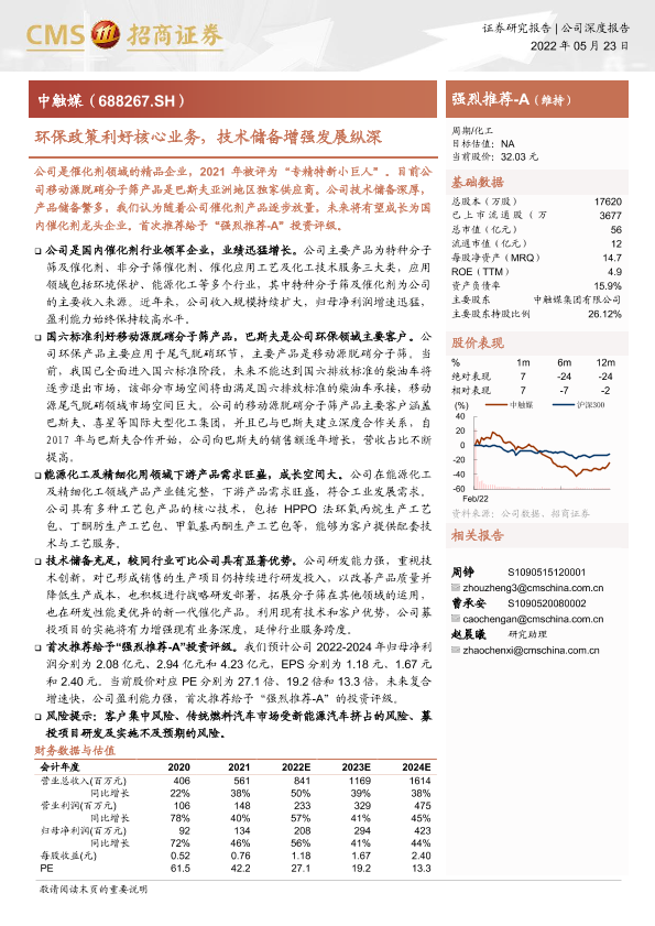 【海通证券】【20220523】中触媒-688267.SH-环保政策利好核心业务,技术储备增强发展纵深-27页