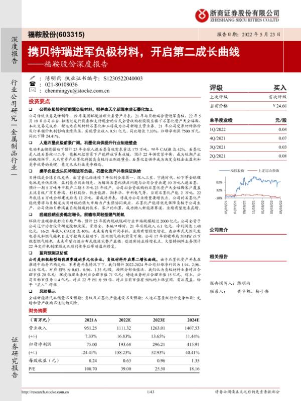 【浙商证券】【20220523】福鞍股份深度报告:携贝特瑞进军负极材料,开启第二成长曲线-43页