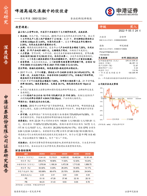 【申港证券】【20220524】啤酒高端化浪潮中的佼佼者——重庆啤酒(600132.SH)-24页