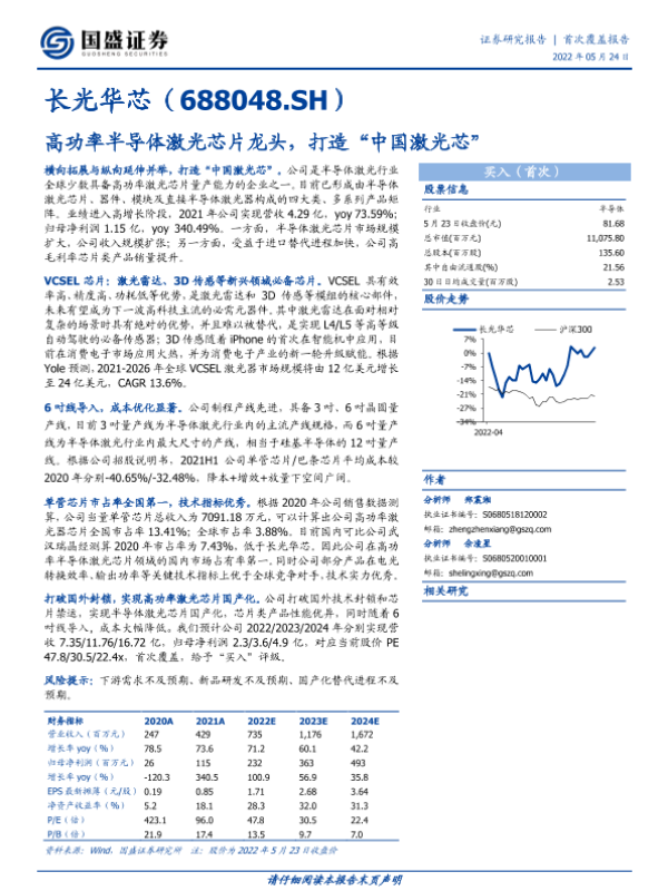 【国盛证券】【20220524】长光华芯-高功率半导体激光芯片龙头,打造“中国激光芯”-34页