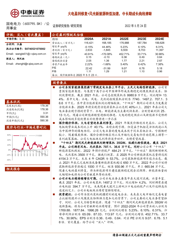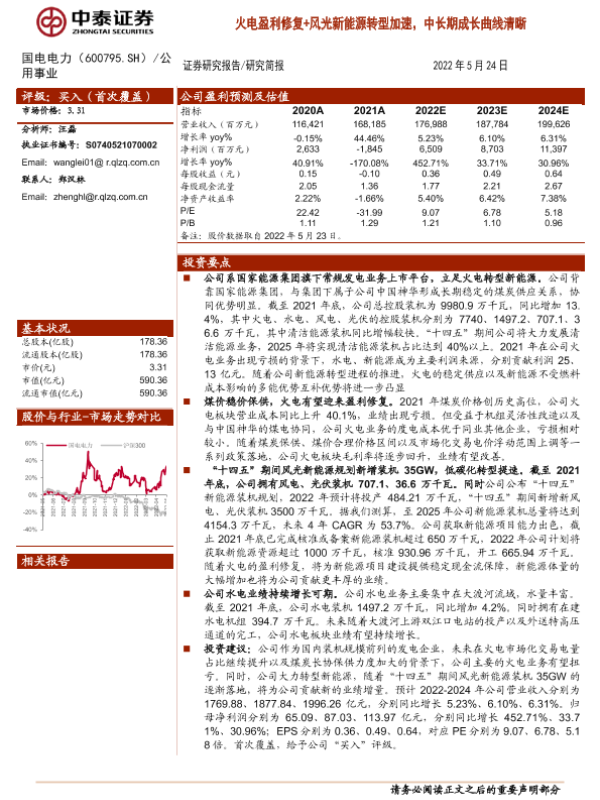 【中泰证券】【20220524】国电电力-600795.SH-火电盈利修复+风光新能源转型加速,中长期成长曲线清晰-23页
