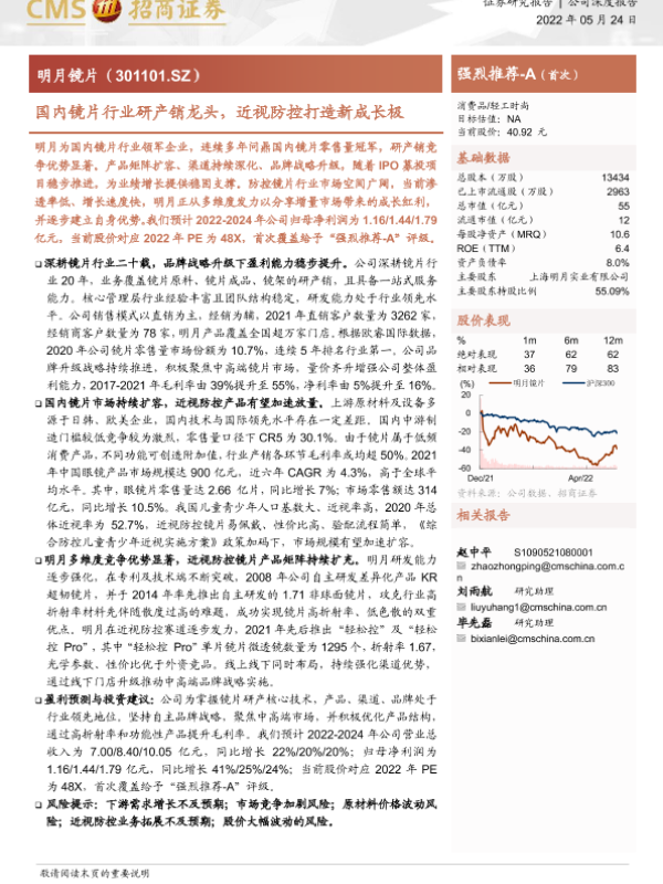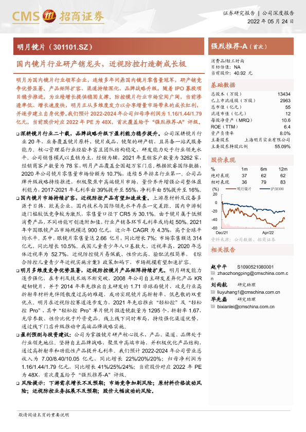 【海通证券】【20220524】国内镜片行业研产销龙头,近视防控打造新成长极-26页
