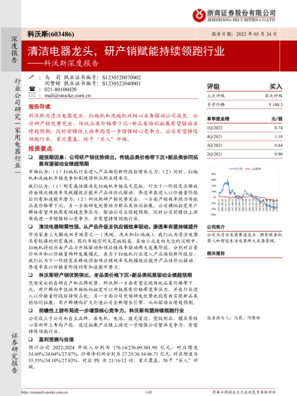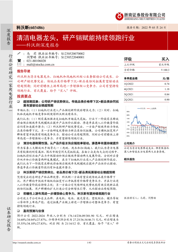 【浙商证券】【20220524】科沃斯深度报告:清洁电器龙头,研产销赋能持续领跑行业-43页