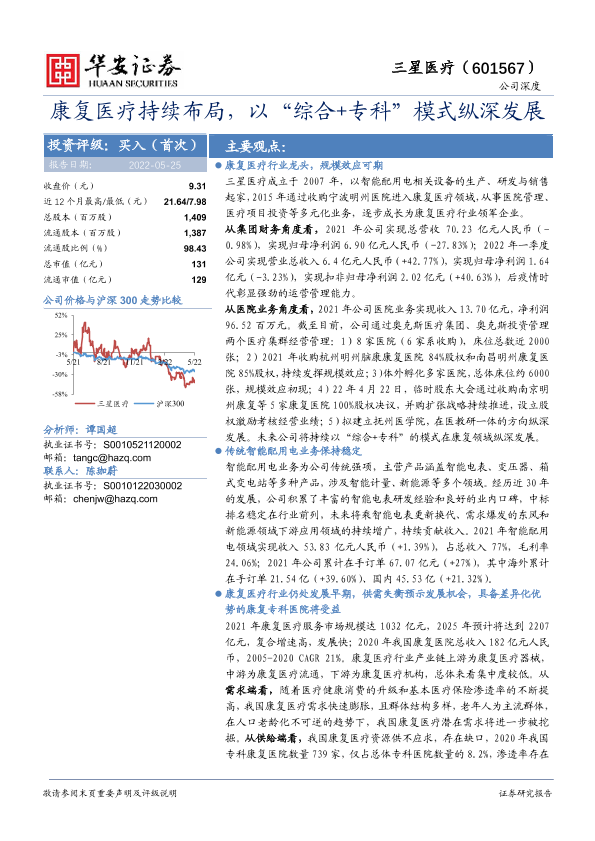 【华安证券】【20220525】康复医疗持续布局,以“综合+专科”模式纵深发展-35页