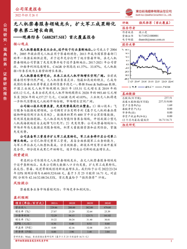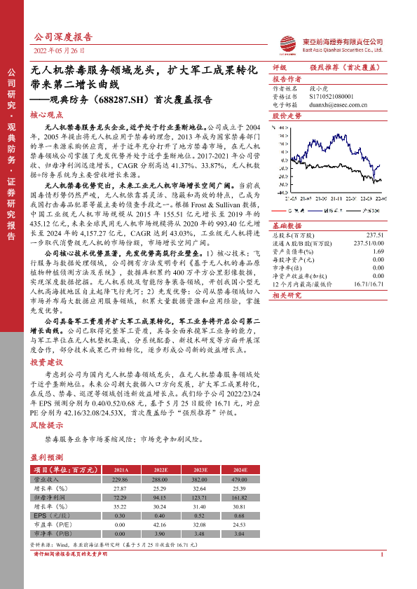【东亚前海证券】【20220526】20220526-东亚前海证券-观典防务-688287.SH-首次覆盖报告:无人机禁毒服务领域龙头,扩大军工成果转化带来第二增长曲线-23页