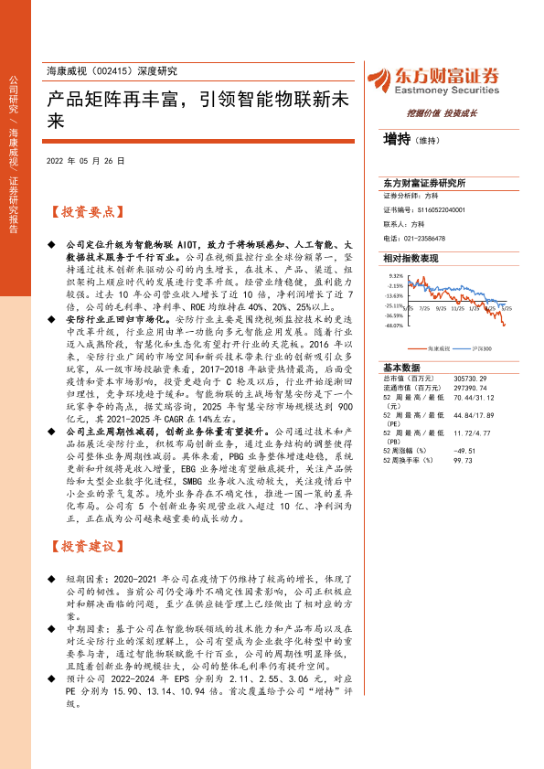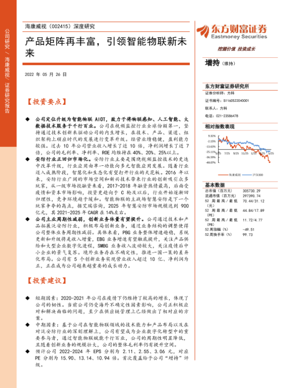 【东方财富证券】【20220526】20220526-东方财富证券-海康威视-002415.SZ-深度研究:产品矩阵再丰富,引领智能物联新未来-35页