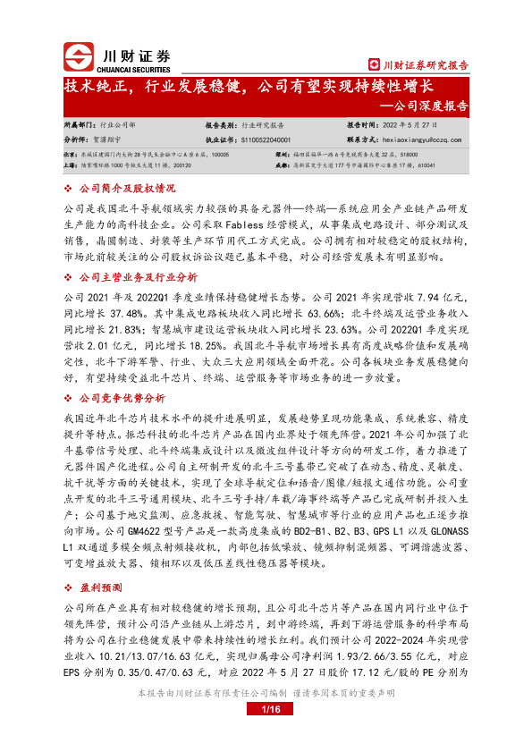 【川财证券】【20220527】20220527-川财证券-振芯科技-300101.SZ-公司深度报告:技术纯正,行业发展稳健,公司有望实现持续性增长-16页