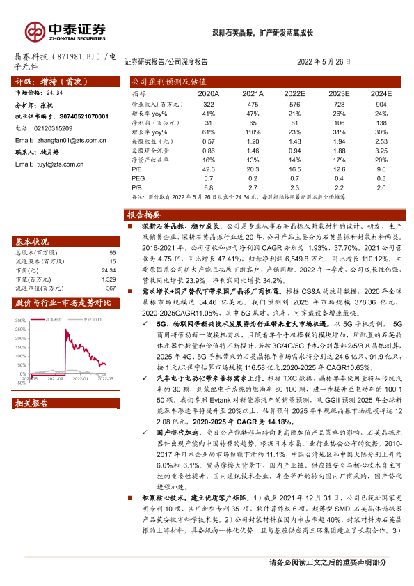 【中泰证券】【20220526】深耕石英晶振,扩产研发两翼成长-25页