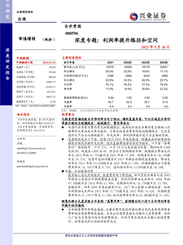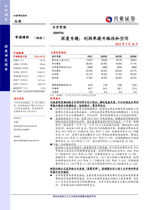 【兴业证券】【20220526】20220526-兴业证券-古井贡酒-000596.SZ-深度专题:利润率提升路径和空间-27页