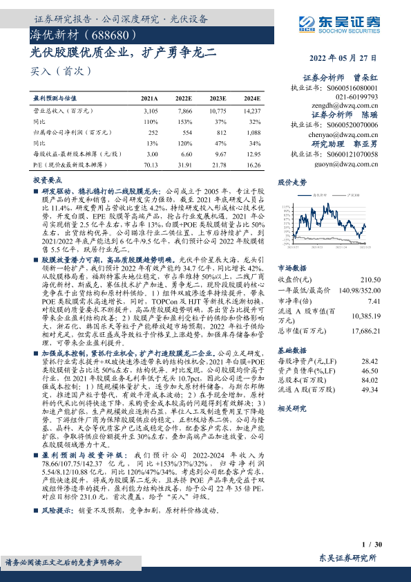 【东吴证券】【20220527】海优新材-688680.SH-光伏胶膜优质企业,扩产勇争龙二-30页