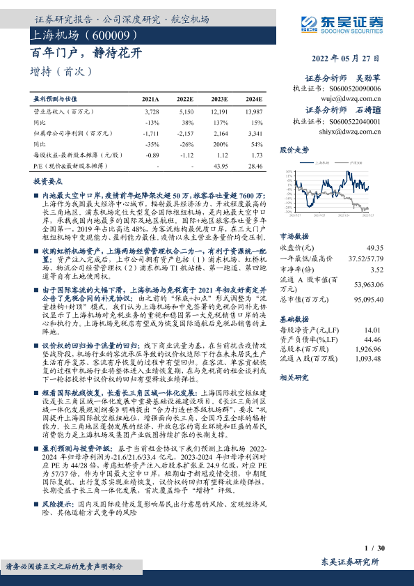 【东吴证券】【20220527】上海机场-600009.SH-百年门户,静待花开-30页