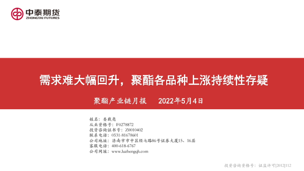 【中泰期货】【20220504】聚酯产业链月报:需求难大幅回升,聚酯各品种上涨持续性存疑-23页