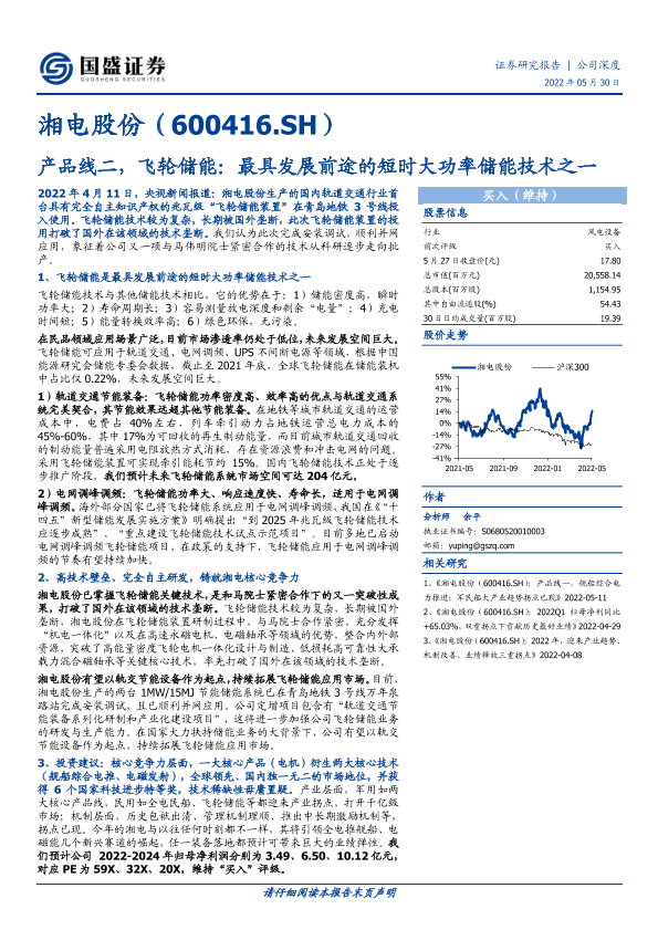 【国盛证券】【20220530】产品线二,飞轮储能:最具发展前途的短时大功率储能技术之一-13页