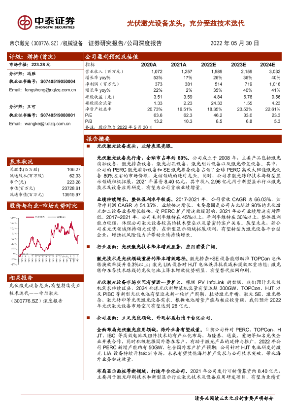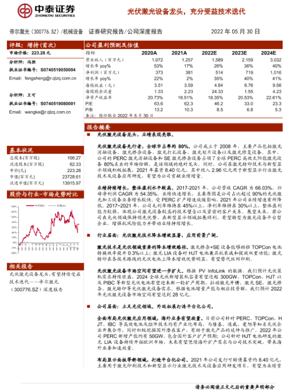 【中泰证券】【20220530】光伏激光设备龙头,充分受益技术迭代-20页