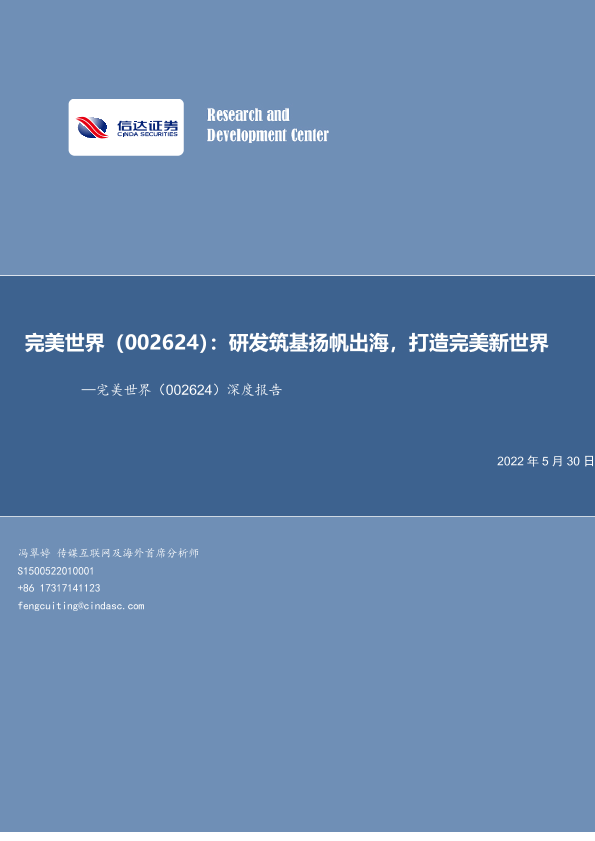 【信达证券】【20220530】完美世界:研发筑基扬帆出海,打造完美新世界-52页