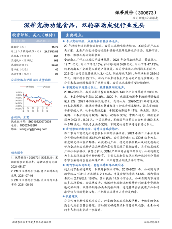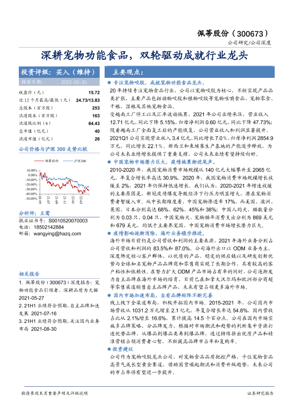 【华安证券】【20220531】深耕宠物功能食品,双轮驱动成就行业龙头-37页