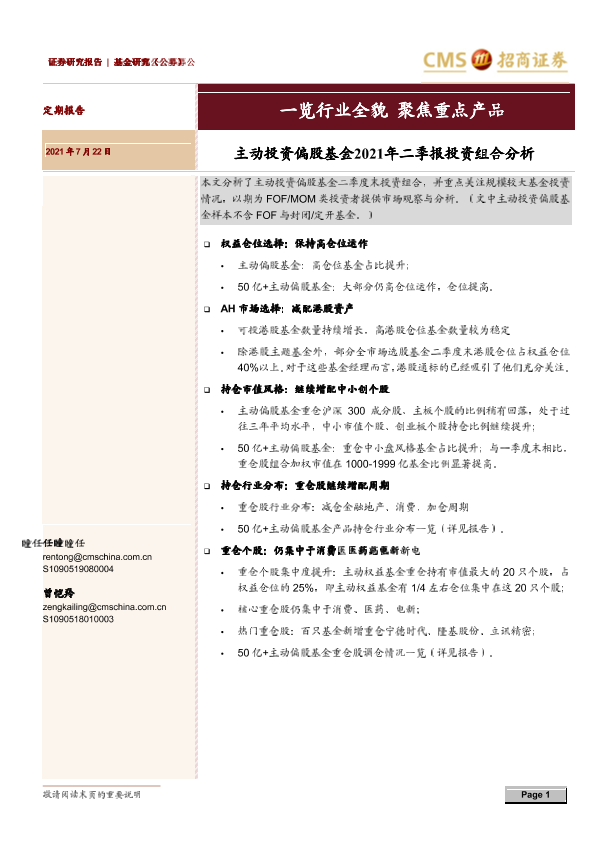 【海通证券】【20210722】主动投资偏股基金2021年二季报投资组合分析:一览行业全貌,聚焦重点产品-17页