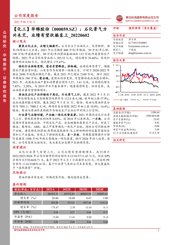 【东亚前海证券】【20220602】华锦股份(000059.SZ):石化景气方兴未艾,业绩有望扶摇直上-27页