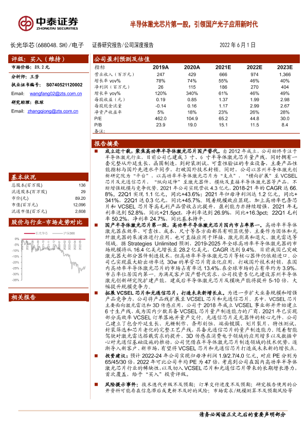 【中泰证券】【20220601】20220601-中泰证券-长光华芯-688048.SH-半导体激光芯片第一股,引领国产光子应用新时代-34页