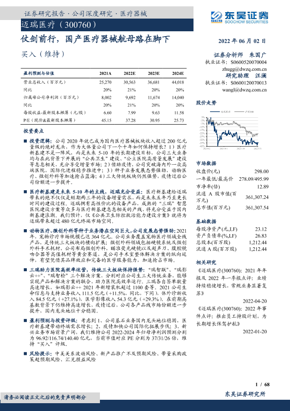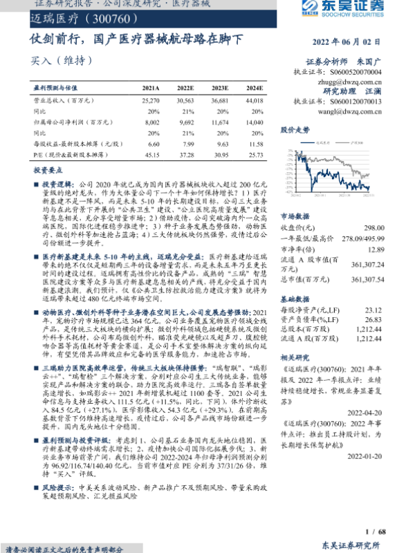 【东吴证券】【20220602】迈瑞医疗-仗剑前行,国产医疗器械航母路在脚下-68页