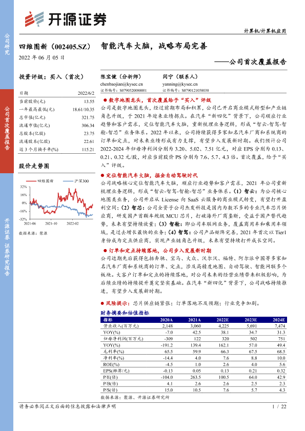 【开源证券】【20220605】20220605-开源证券-四维图新-002405.SZ-公司首次覆盖报告:智能汽车大脑,战略布局完善-22页