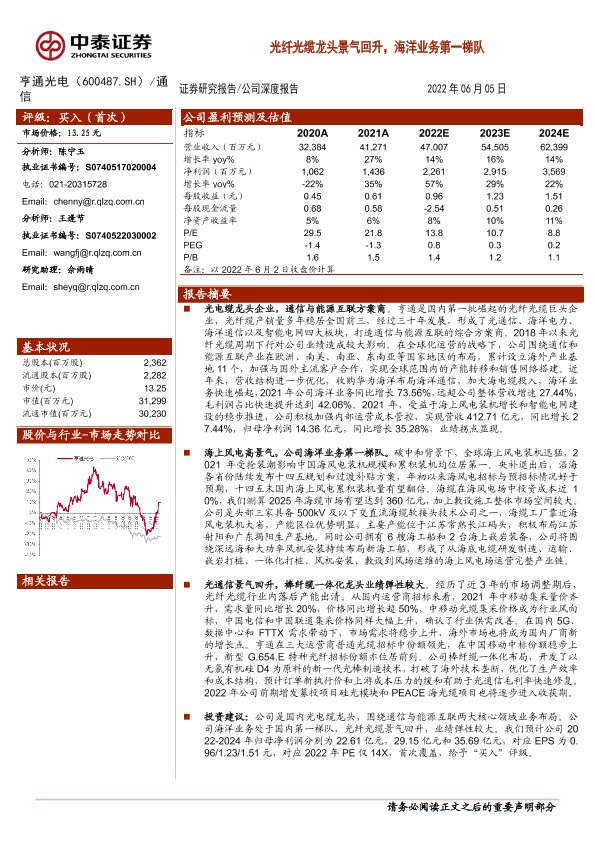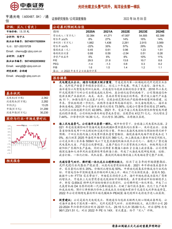 【中泰证券】【20220605】20220605-中泰证券-亨通光电-600487.SH-光纤光缆龙头景气回升,海洋业务第一梯队-36页