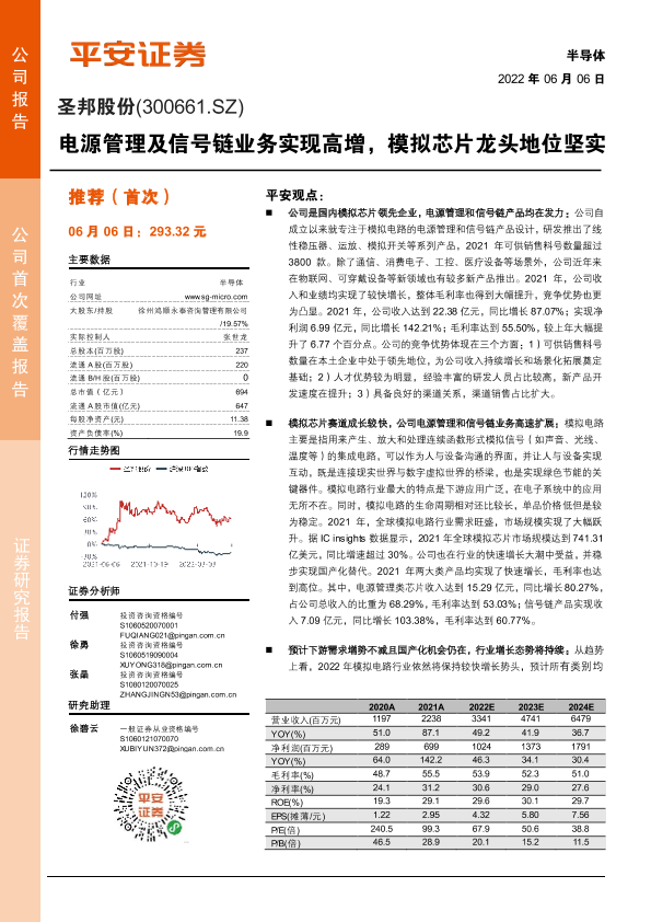 【平安证券】【20220606】圣邦股份-电源管理及信号链业务实现高增,模拟芯片龙头地位坚实-25页