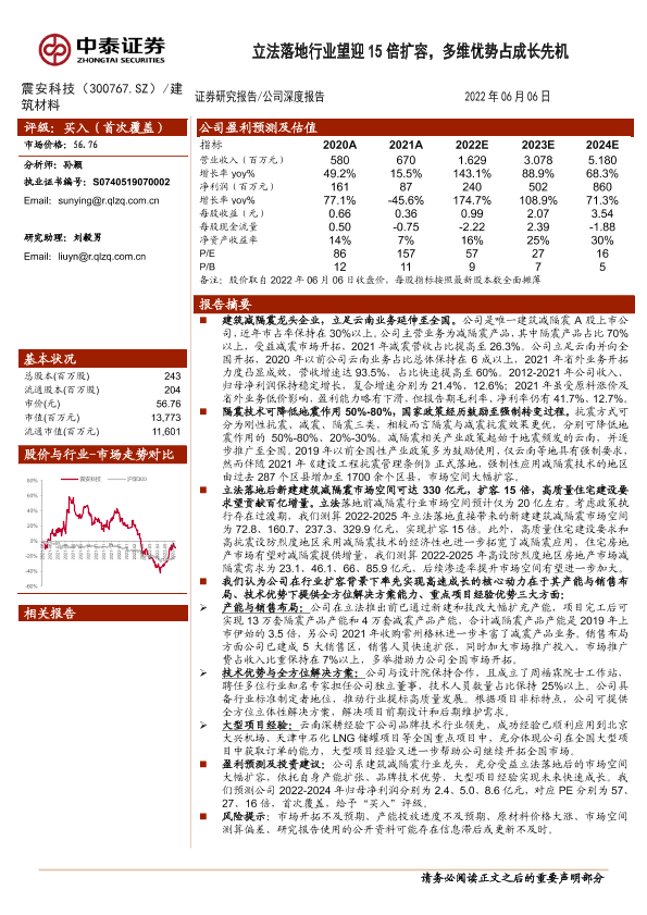 【中泰证券】【20220606】20220606-中泰证券-震安科技-300767.SZ-立法落地行业望迎15倍扩容,多维优势占成长先机-28页