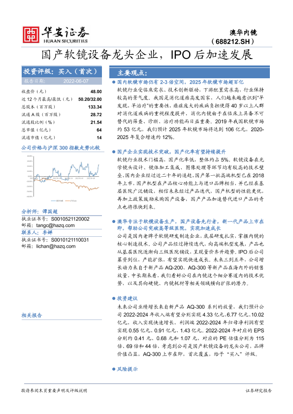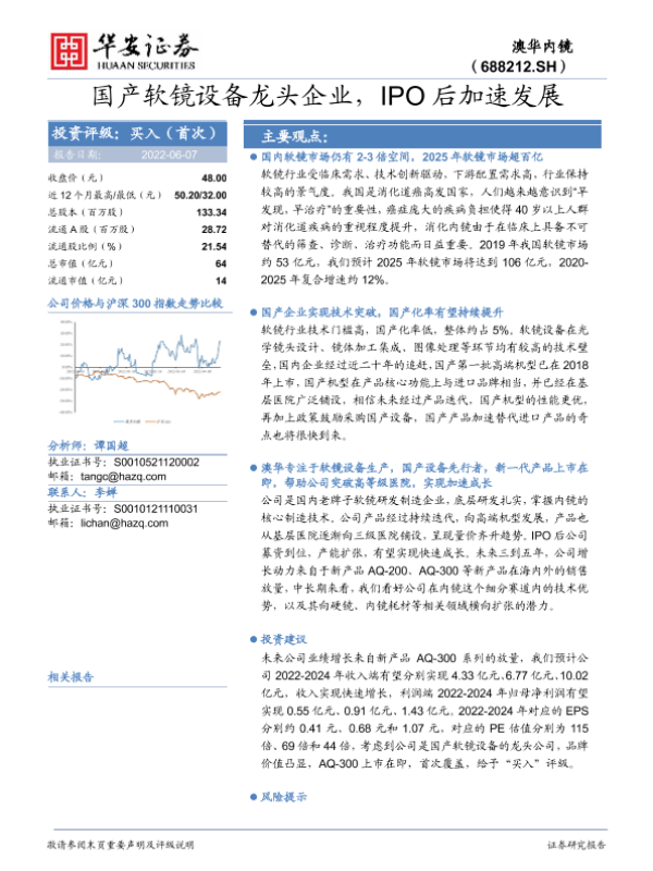 【华安证券】【20220607】国产软镜设备龙头企业,IPO后加速发展-34页