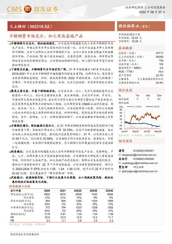 【海通证券】【20220607】不锈钢管市场龙头,加大布局高端产品-22页