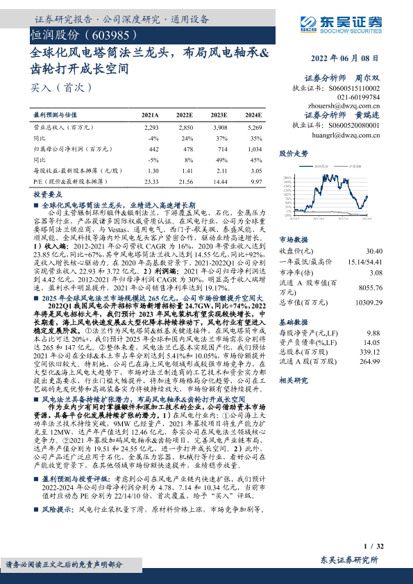 【东吴证券】【20220608】全球化风电塔筒法兰龙头,布局风电轴承&齿轮打开成长空间-32页