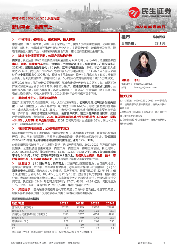 【民生证券】【20220608】20220608-民生证券-中材科技-002080.SZ-深度报告:新材平台,乘风而上-30页