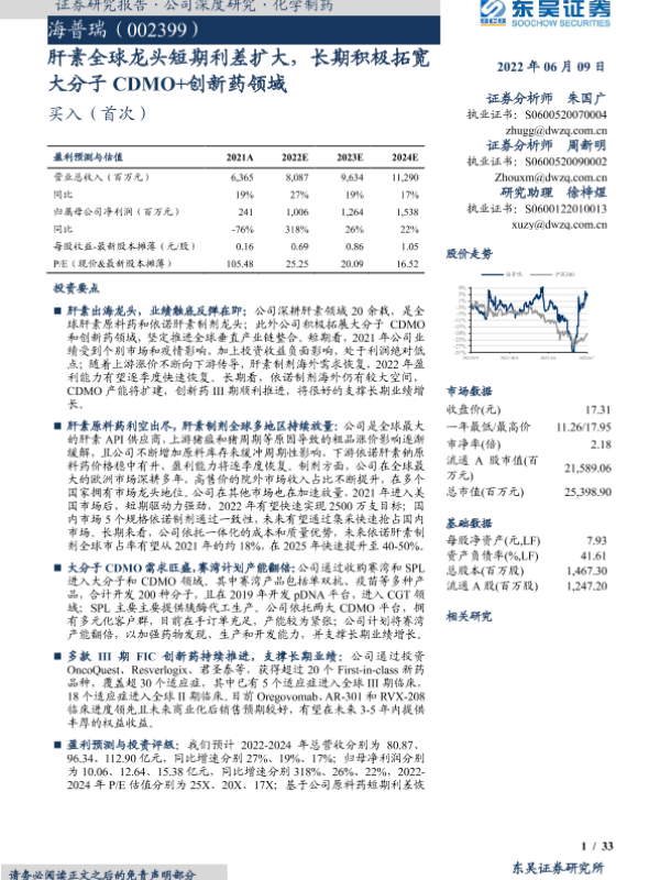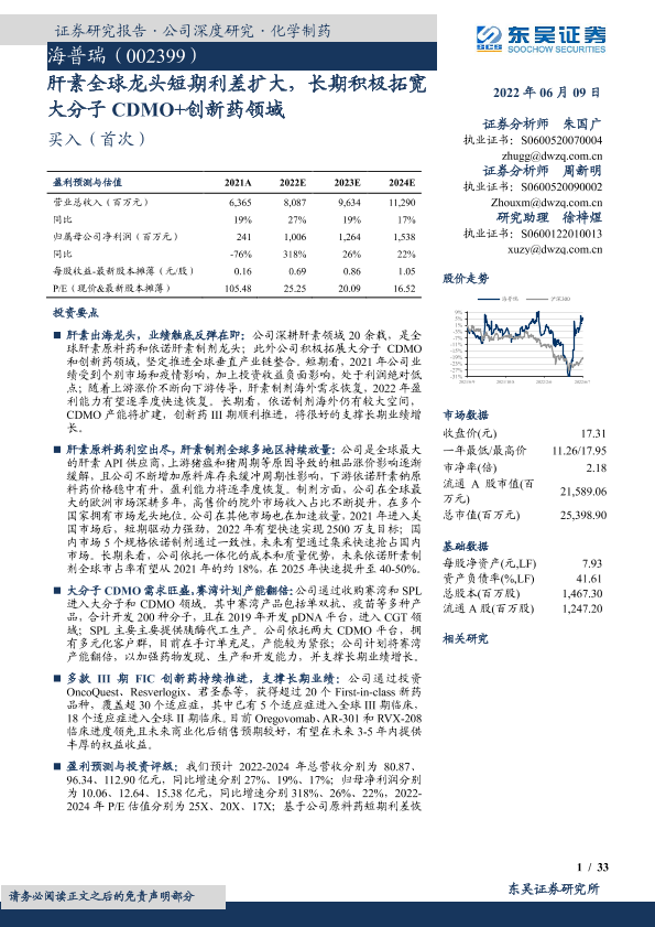 【东吴证券】【20220609】肝素全球龙头短期利差扩大,长期积极拓宽大分子CDMO+创新药领域-33页