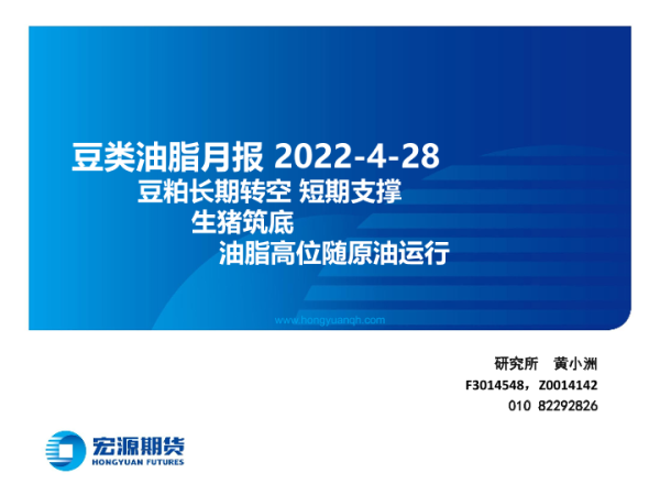 【宏源期货】【20220428】豆类油脂月报:豆粕长期转空,短期支撑,生猪筑底,油脂高位随原油运行-24页