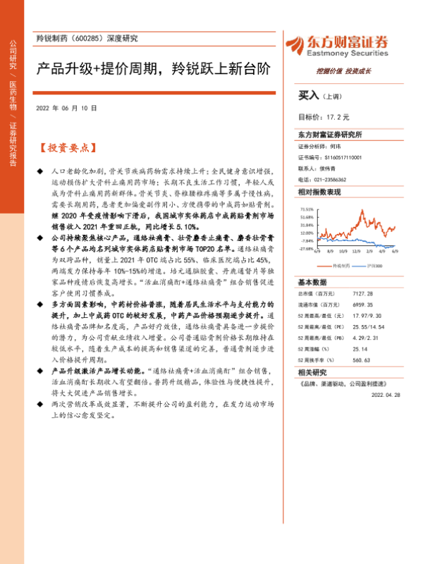 【东方财富证券】【20220610】20220610-东方财富证券-羚锐制药-600285.SH-深度研究:产品升级+提价周期,羚锐跃上新台阶-31页