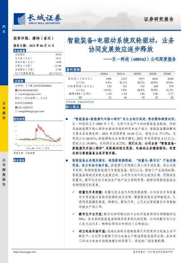 【长城证券】【20220611】20220611-长城证券-巨一科技-688162.SH-公司深度报告:智能装备+电驱动系统双轮驱动,业务协同发展效应逐步释放-37页