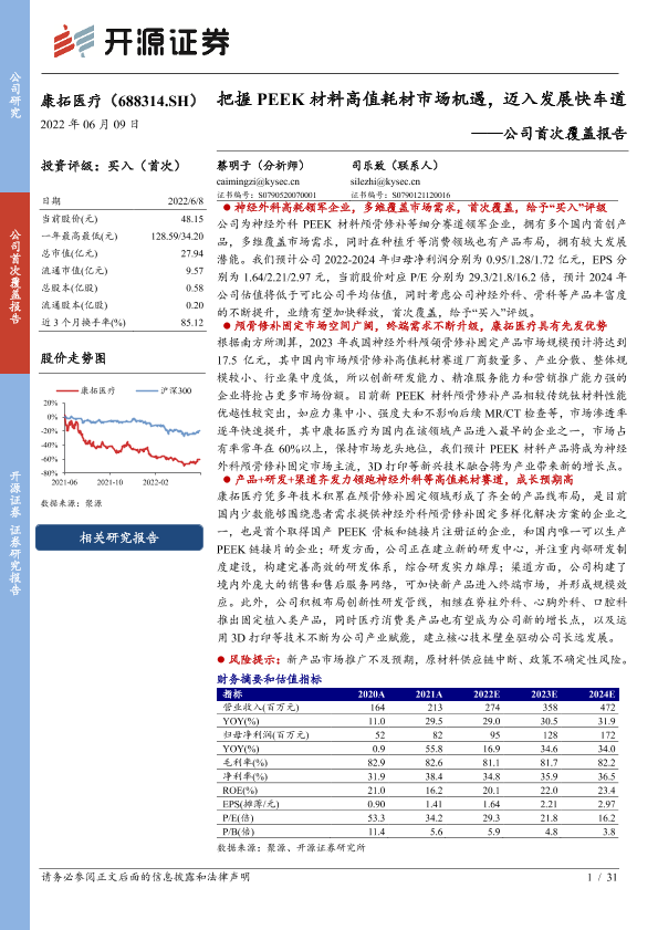 【开源证券】【20220610】康拓医疗-688314.SH-公司首次覆盖报告:把握PEEK材料高值耗材市场机遇,迈入发展快车道-31页