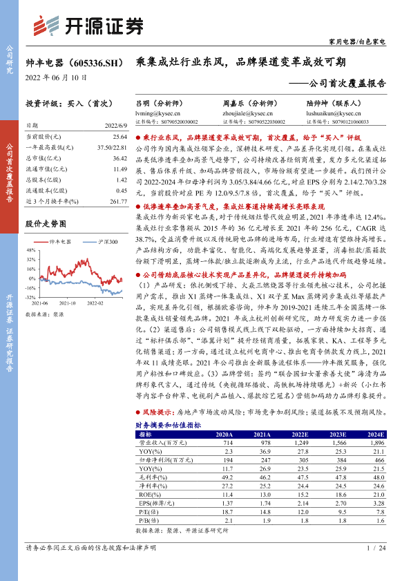 【开源证券】【20220610】乘集成灶行业东风,品牌渠道变革成效可期-24页