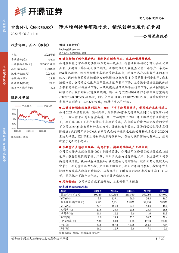 【开源证券】【20220612】宁德时代公司深度报告:降本增利持续领跑行业,横纵创新发展利在长期-20页