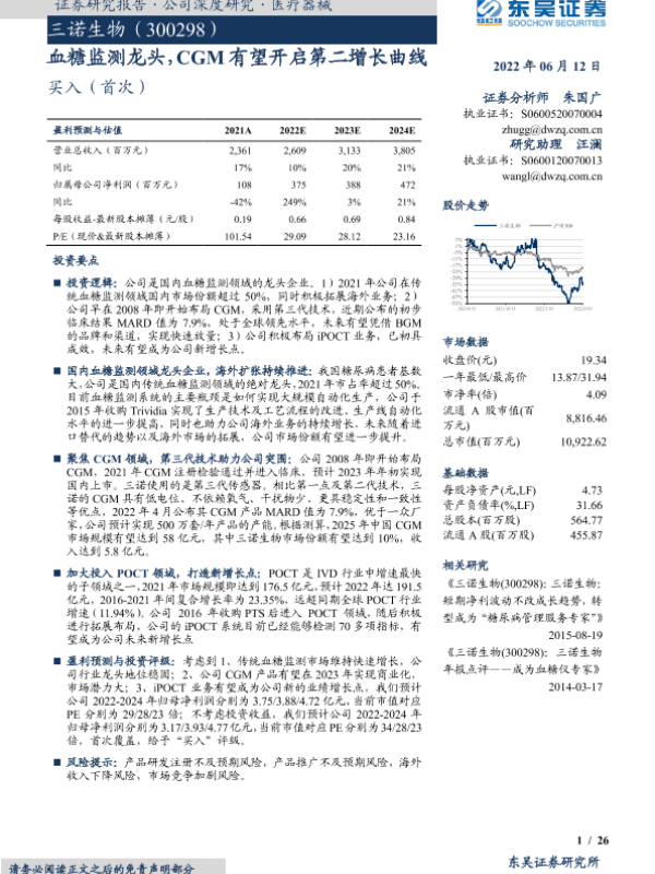 【东吴证券】【20220612】三诺生物:血糖监测龙头,CGM有望开启第二增长曲线-26页