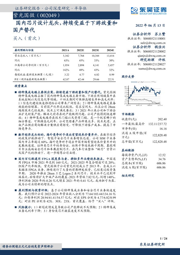 【东吴证券】【20220613】紫光国微-002049.SZ-国内芯片设计龙头,持续受益于下游放量和国产替代-24页
