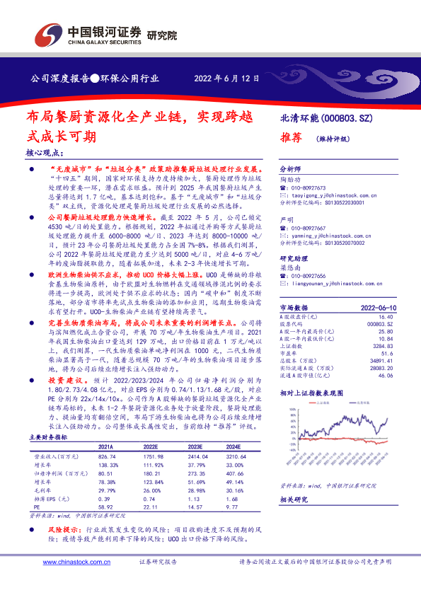 【银河证券】【20220612】布局餐厨资源化全产业链,实现跨越式成长可期-24页