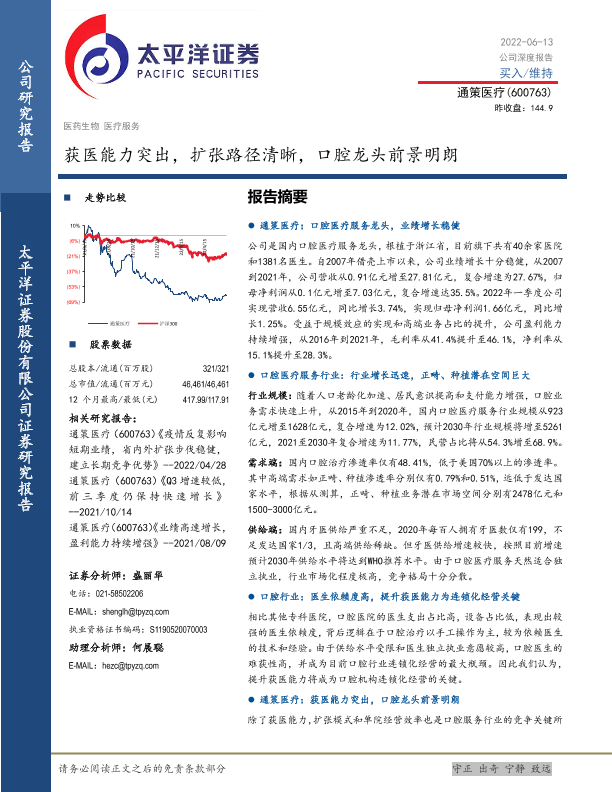【太平洋证券】【20220613】通策医疗-获医能力突出,扩张路径清晰,口腔龙头前景明朗-52页