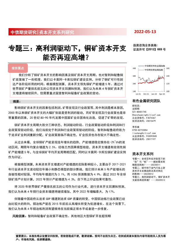 【中信期货】【20220513】资本开支系列研究专题三:高利润驱动下,铜矿资本开支能否再迎高增?-22页